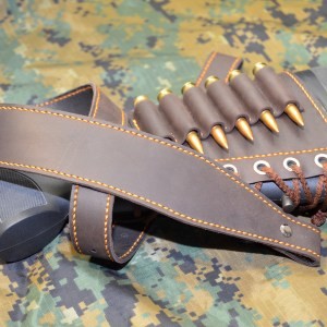 Ce porte cartouches en cuir et suède pour arme longue est équipé d'un dispositif antiglisse qui évite à votre appuie joue de glisser de votre crosse lors des tirs de munitions de gros calibres.