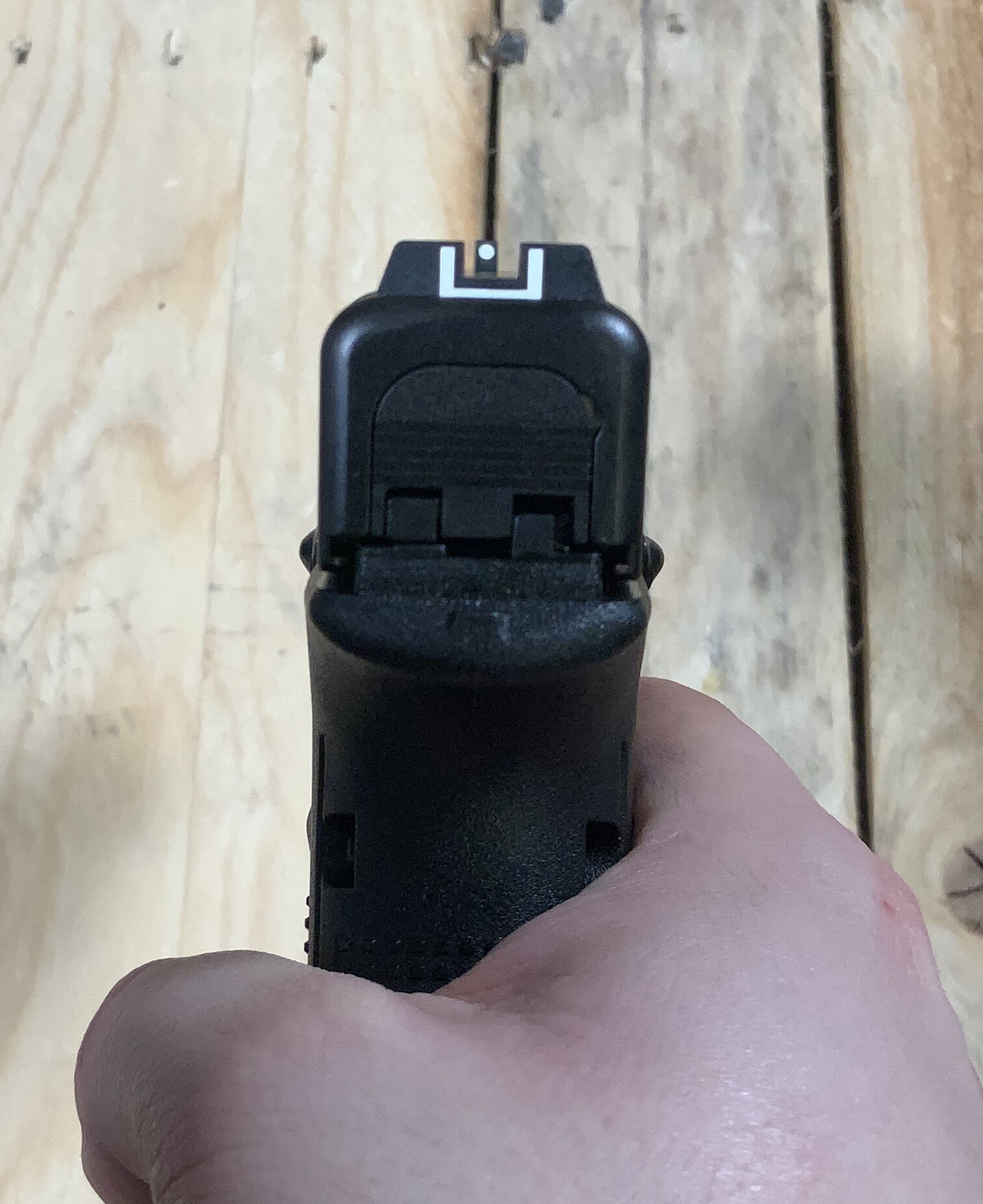 L'introduction d'un puit de chargeur évasé augmente les performances en facilitant l'introduction du magazine dans celui-ci, en particulier dans les situations de stress.