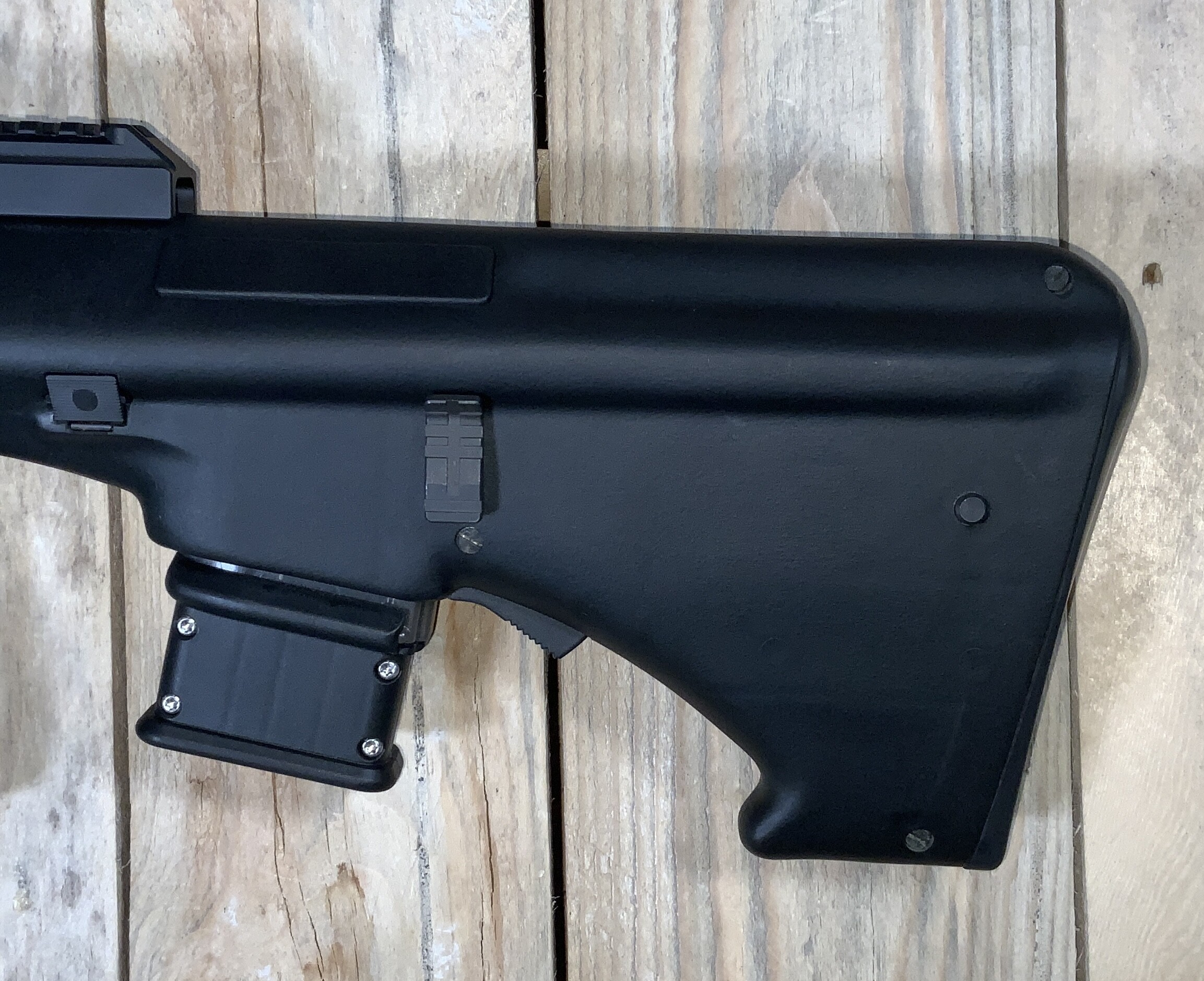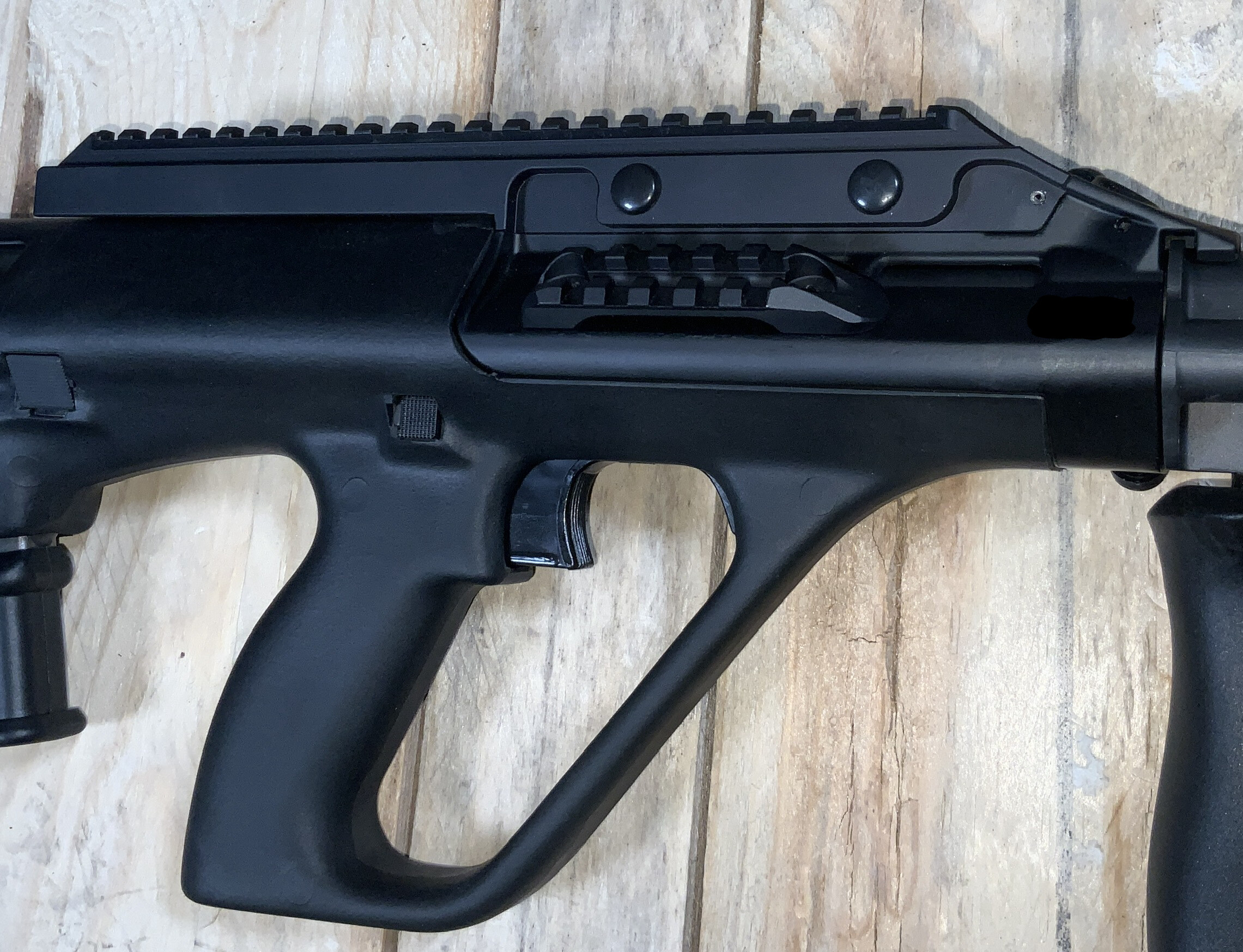 Système BUll-Pup traditionnel, fonctionnement par piston course courte, elle reste compacte même avec un canon de 16" parfaitemet adapté à la munition de 55gr.